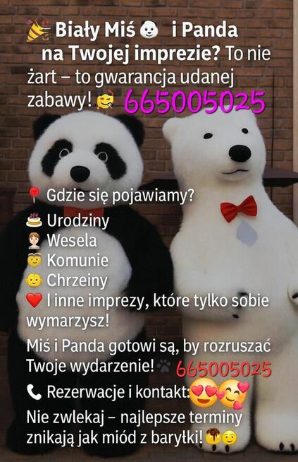 Dzień dobry Panda i Biały Miś zapraszają na wspólne Imprezy. Zapraszamy do wspólnej zabawy kontakt 665005025 prosimy ...